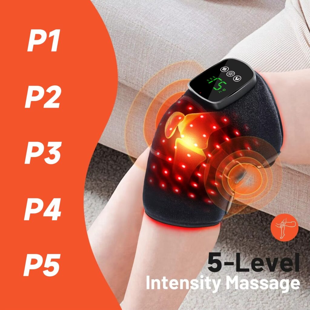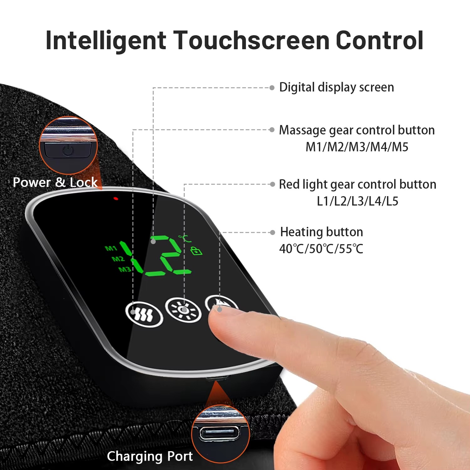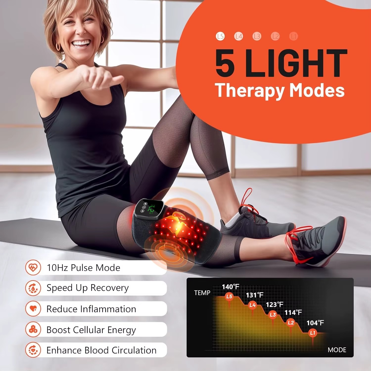 • Wireless Rechargeable 660nm&850nm Red Light Therapy Heated Massage Device for Knee
